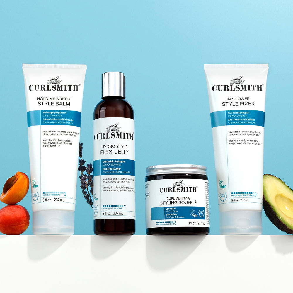 Some gels can leave your curls feeling stiff and dry, but you can trust that Curlsmiths selection will leave your hair feeling bouncy and defined. Our styling gels fall into three variations; jelly, souffle, and gel. Let's take a look at how they differ.